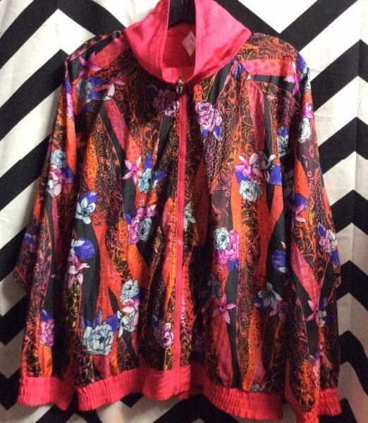 WINDBREAKER JACKET – ZIP-UP – REVERSIBLE – BAROQUE PRINT – ASIAN FLORAL DESIGN