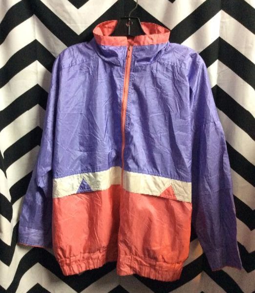 FUN! 1980S COLORBLOCK NYLON MOCK COLLAR ZIP-UP JACKET