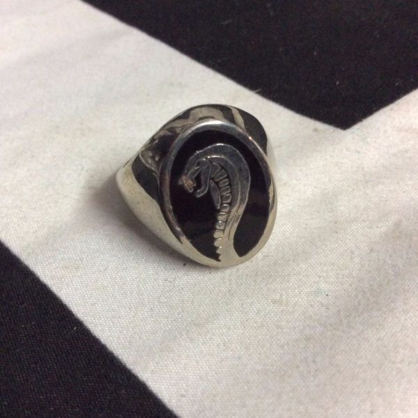 Ring, Cobra head on oval insert, silver/black, size 12