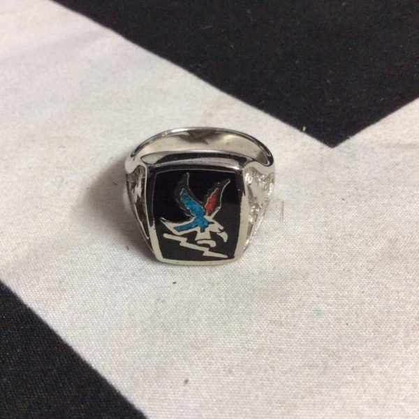 RING SQUARE INSERT EAGLE INLAY EAGLE SIDE ENGRAVING