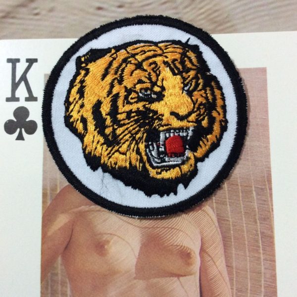 ROARING TIGER HEAD ON ROUND SHAPE EMBROIDERED PATCH