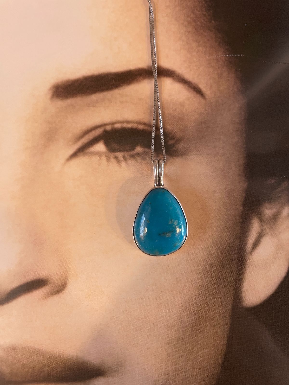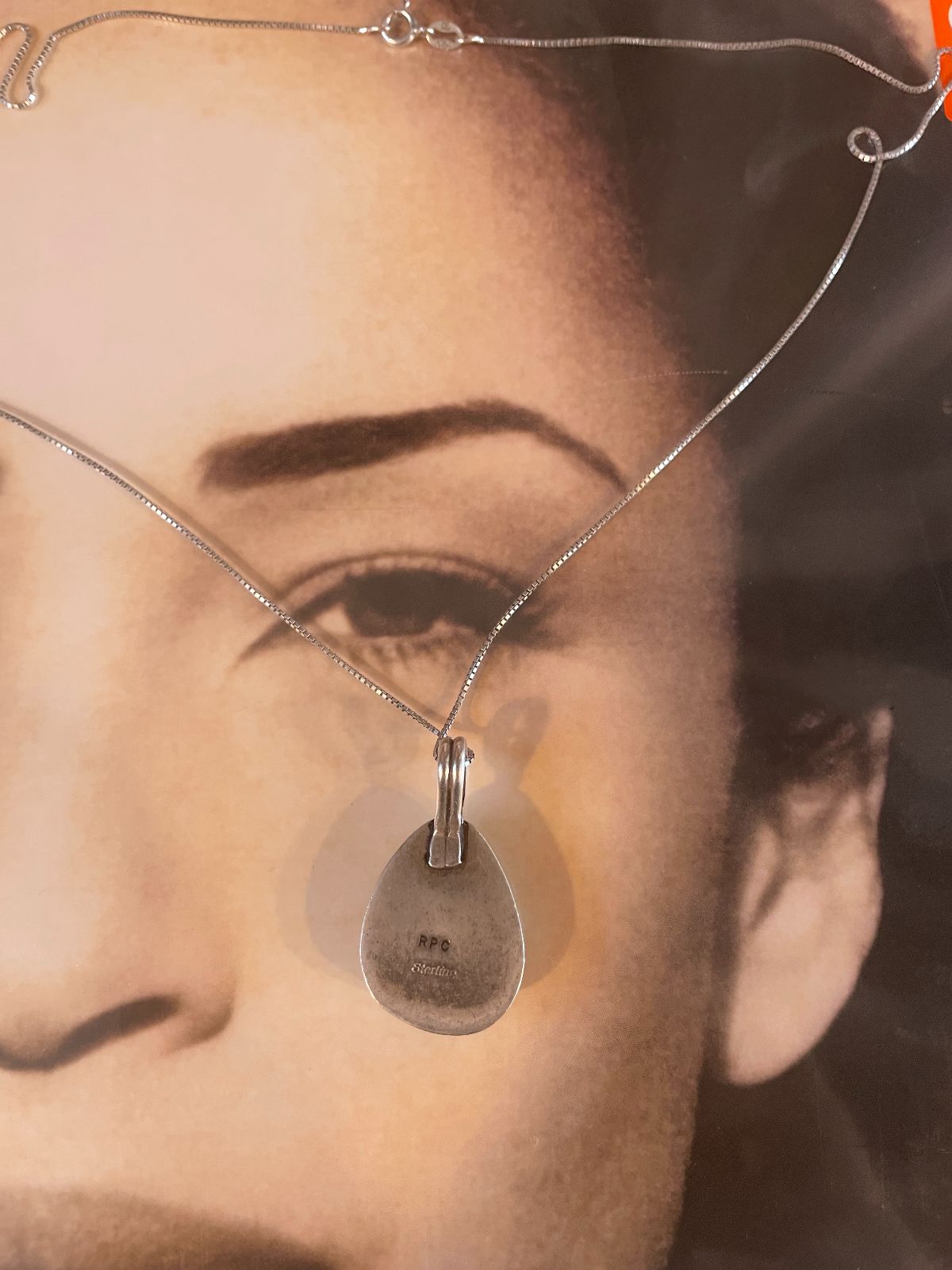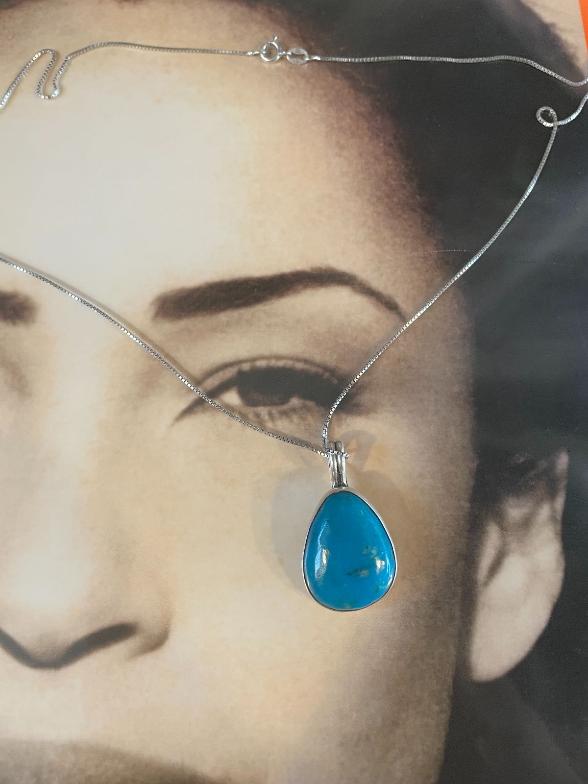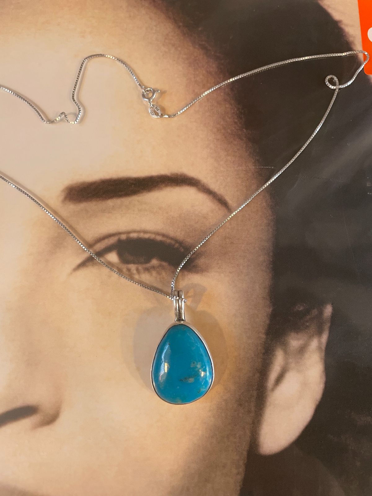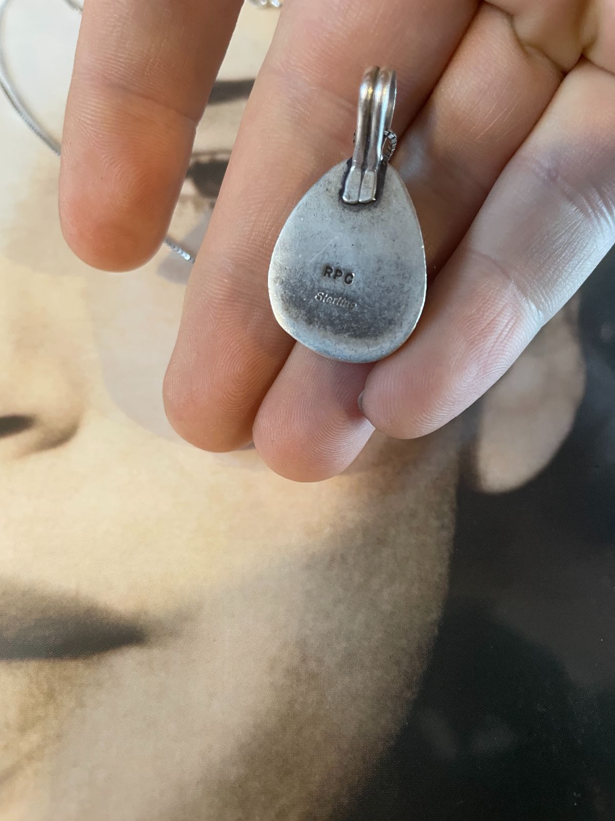 RONALD & PETRA CHAVEZ RPC STAMPED TEARDROP TURQUOISE STERLING SILVER PENDANT NECKLACE