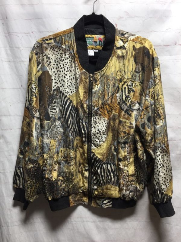 WILD SAFARI TYPE ANIMAL PRINT ZIP-UP BOMBER JACKET