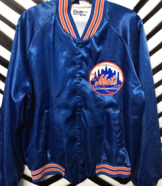 New York Mets satin baseball jacket, button-up, patches, blue, size L