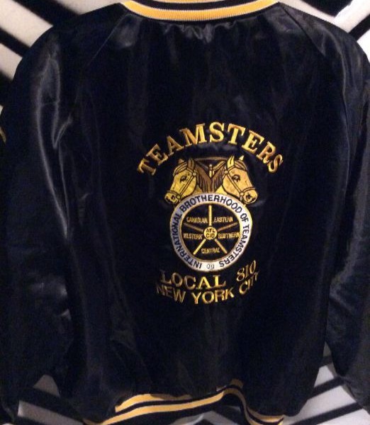 BLACK SATIN TEAMSTERS JACKET LOCAL 810 NY