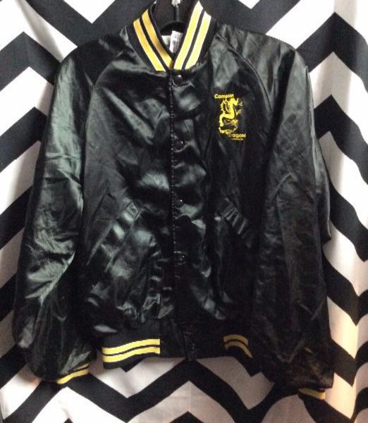 Baseball style jacket, satin, button-up, Cameron Dragons, black/yellow