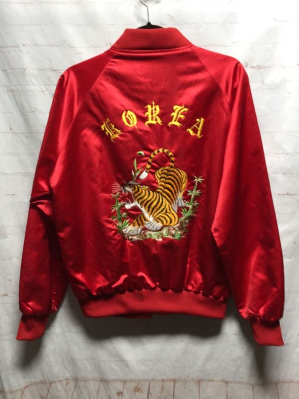 SATIN BOMBER JACKET W/ KOREA & TIGER EMBROIDERED BACK DESIGN
