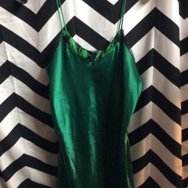 Night gown, satin, mini length, lace trim, emerald green, size L