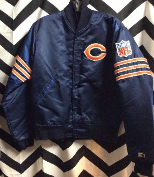 BASEBALL STYLE JACKET – SATIN – CHICAGO BEARS – NFL PATCH – STRIPED SLEEVES