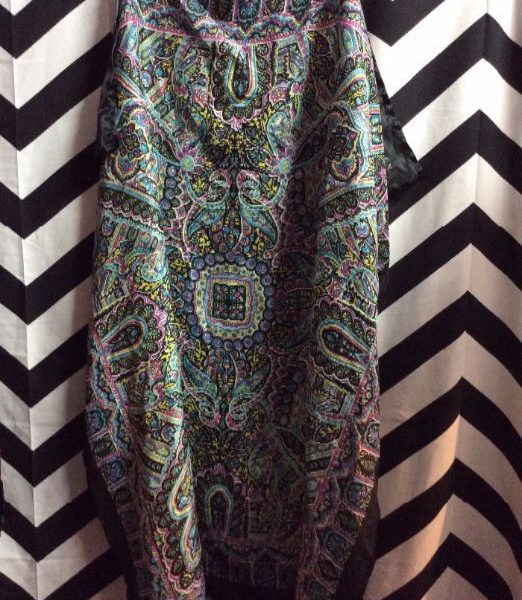 Scarf, satin, Paisley design, black/blue/purple/yellow, size 37″ x 37″