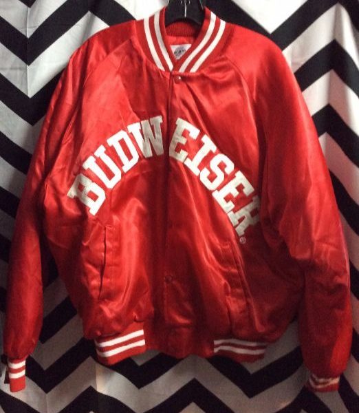 BASEBALL STYLE JACKET – SATIN – SCREEN PRINTED BUDWEISER LETTERING