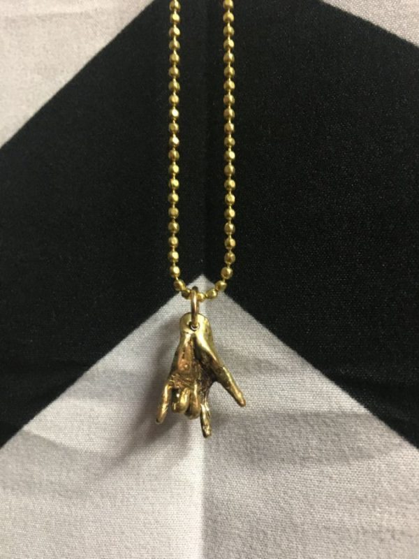 Necklace, brass, Say Anything charm, hand sign I Love You, ball chain, gold