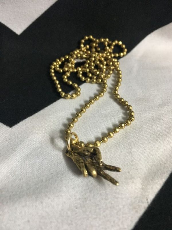 Necklace, brass, Say Anything charm, Peace hand sign, ball chain, gold