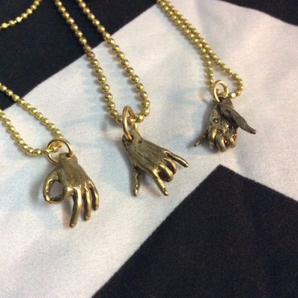Necklace, Shaka, Say Anything, moveable hand charm, brass