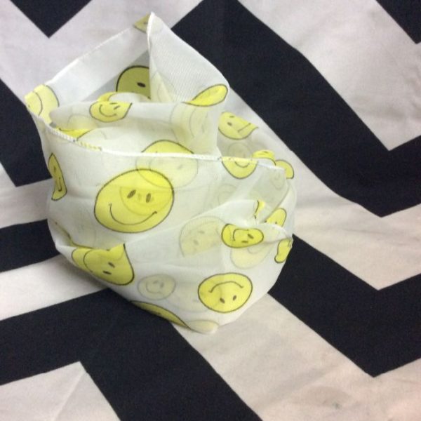 Scarf, sheer, long, light background Happy Faces design, white/yellow/black