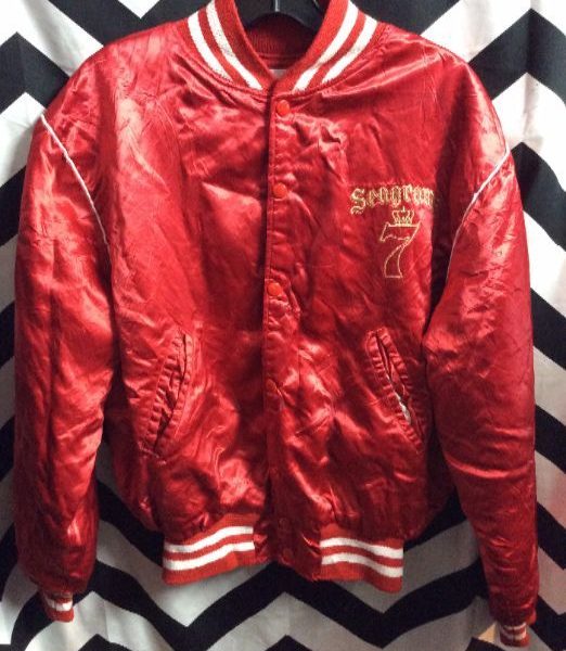 BASEBALL STYLE JACKET – SEAGRAMS 7 – SATIN – FORD & STARS HEAT TRANSFER DESIGN