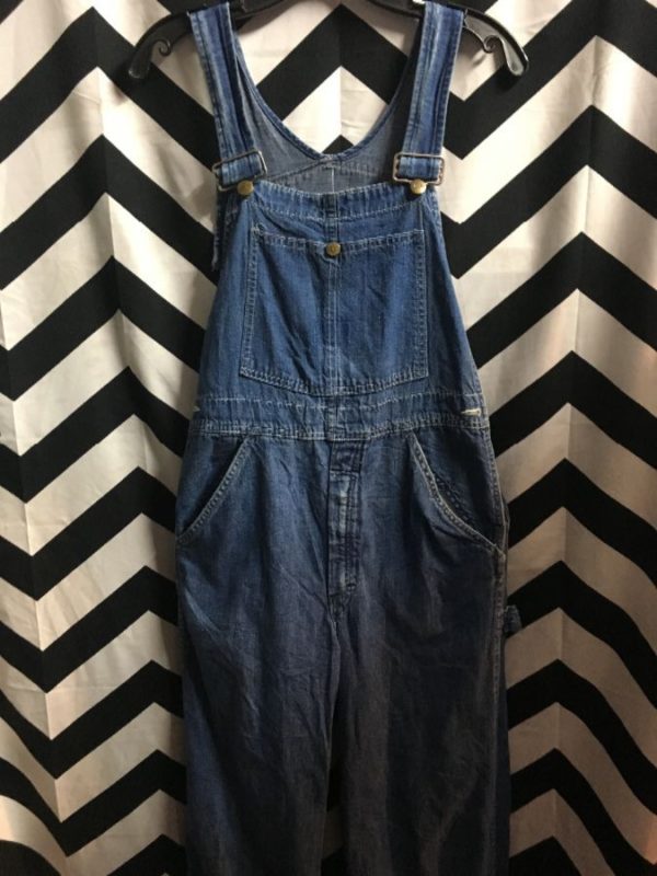Classic Sears overalls, soft, 2 large front pockets & large front chest pouch, blue, small fit as is