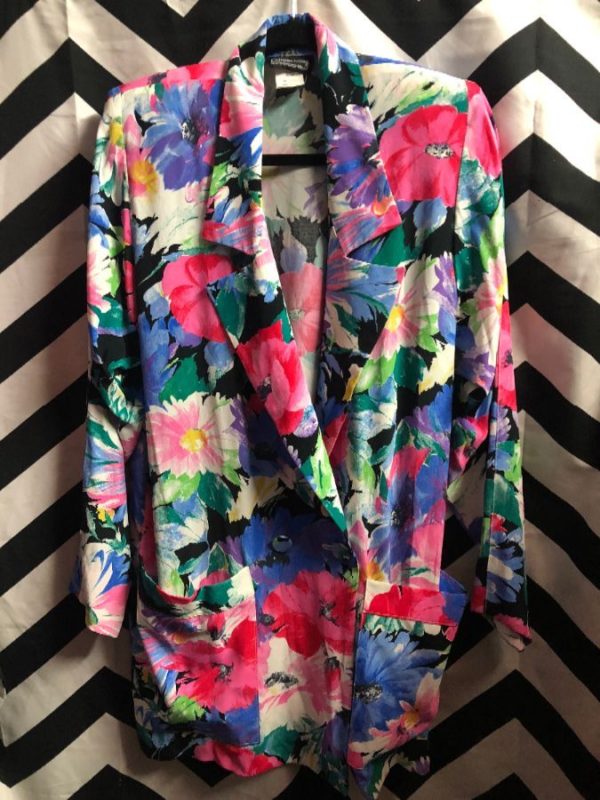 SEMI-SHEER FLORAL PRINT DESIGN BLAZER JACKET