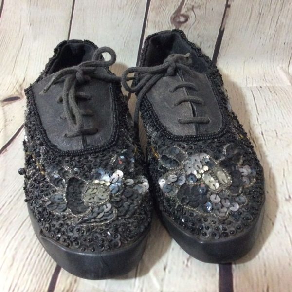 SEQUIN & LEATHER TRIM LACE-UP SNEAKERS
