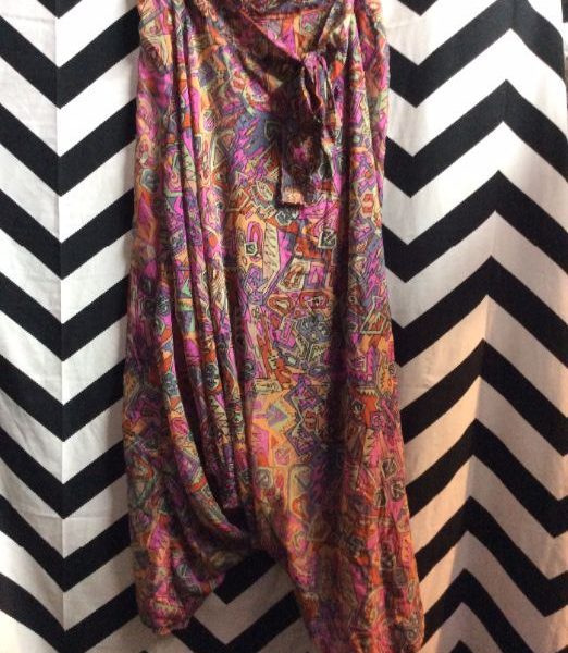 Harem pants, sheer, multi-color print, pink/purple/green/orange