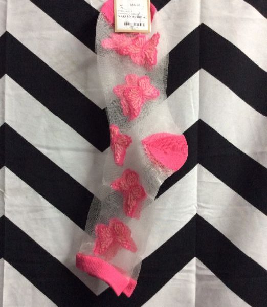 SOCKS, SHEER, BUTTERFLY DESIGN, PINK