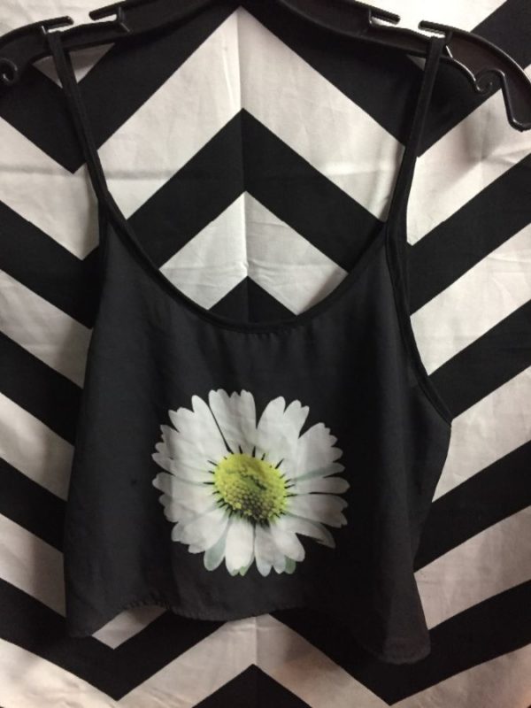 Tank top, cami style, sheer, full front sunflower graphic, black/white/yellow, size S