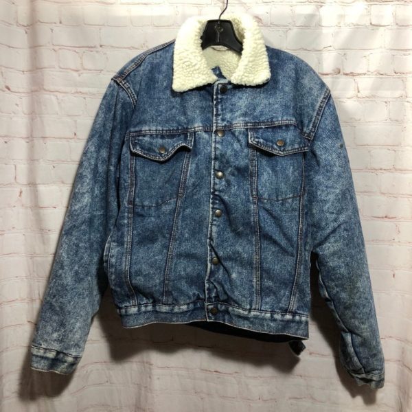*AS-IS* SHERPA LINED DENIM JACKET CORDUROY COLLAR PAISLEY BRASS SNAP BUTTONS- RIBBED INTERIOR CUFF