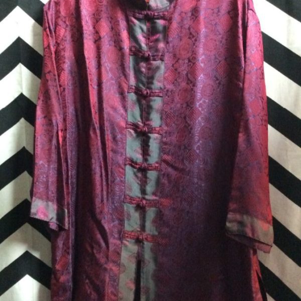 Shirt, Chinese style, mock neck, button-up with cloth knot buttons, purple/fuchsia