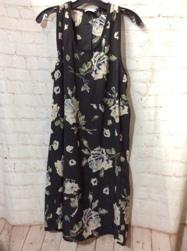 Joie dress, sundress style, sleeveless, seam bound edges on straps & neck, short, flowy, floral print design, Black/creme/lavender/pink/green, size L