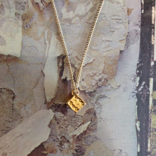 Necklace, dice pendant, short loop chain, gold