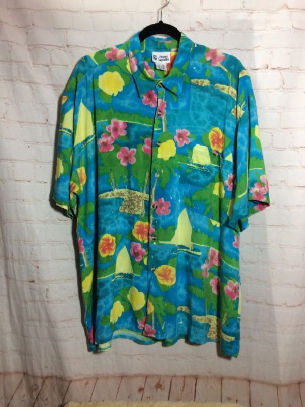 HAWAIIAN SHIRT RAYON W/ SAILBOATS & TROPICAL DESIGN
