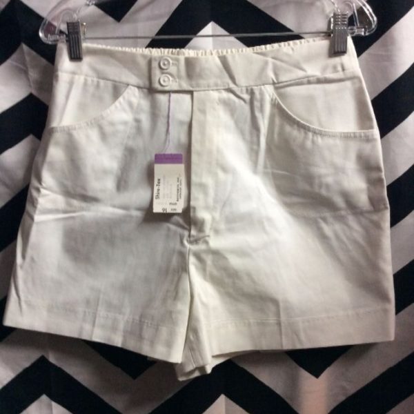 1970’s shorts, tennis style, elastic waist, deadstock, NWT, off white, size 16