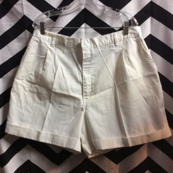 1970’S SHORTS – TENNIS STYLE – THIN VERTICAL STRIPES – PASTEL COLORS