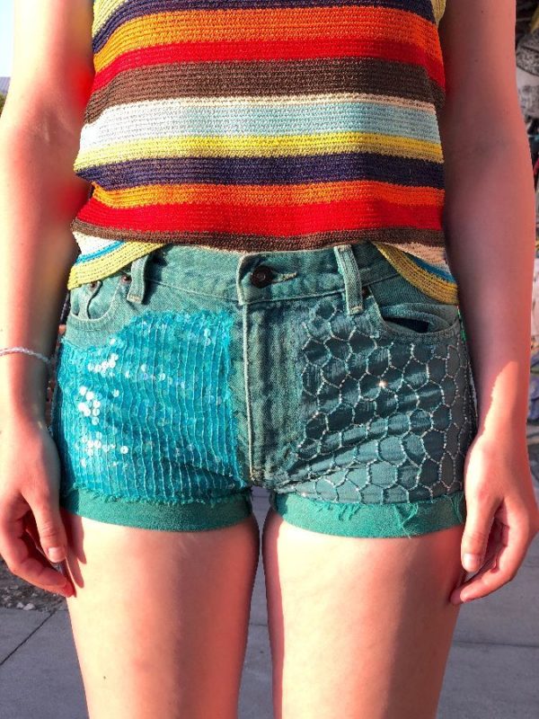 1990S DEADSTOCK DENIM SHORTS VERTICAL STRIPES