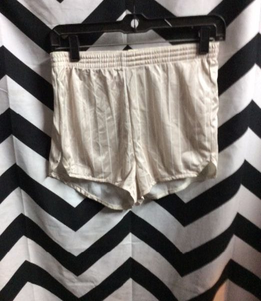 Shorts, Dolphin, shiny satin look, pinstripe design, creme/white, size S