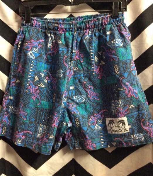 SHORTS/SWIM TRUNKS – GECKO PATTERN – DRAWSTRING WAIST