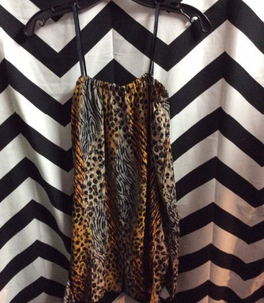 HOTD LEOPARD EYES STRAPPY ASYMMETRICAL DRESS WITH LEOPARD LACE CONTRAST