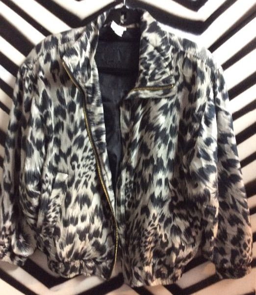 Bomber jacket, silk, zip-up, animal print design, white/grey, size S