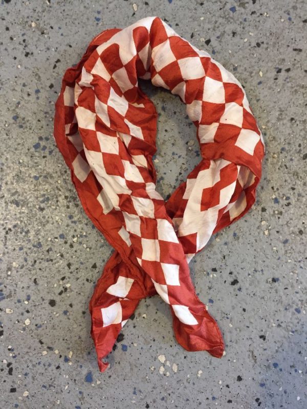 Scarf, silk, square shaped, checkered print, rust/white As is