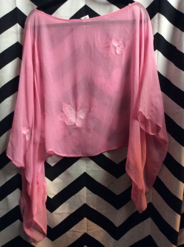 SILK CHIFFON TOP W/ BATWING SLEEVES & BUTTERFLY DESIGNS