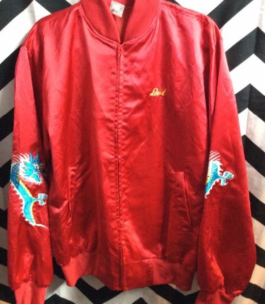 BOMBER JACKET – SILK W/EMBROIDERED LETTERING KOREA & DRAGON