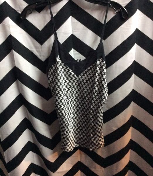 TOP – CAMISOLE – SILK – HOUNDS-TOOTH PATTERN W/CONTRASTING NECK TRIM – SPAGHETTI STRAPS
