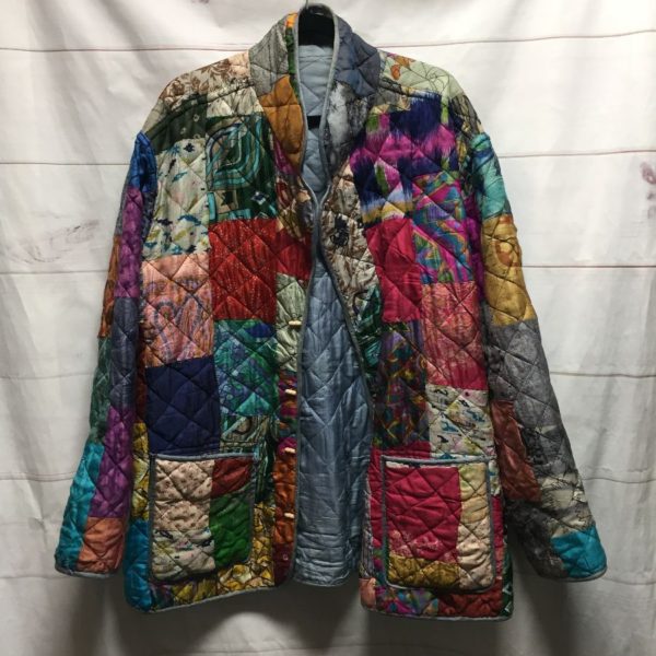 SILK PUFFY PATCHWORK JACKET WOOD TOGGLE BUTTONS – AS IS
