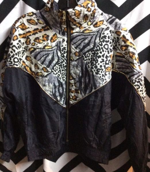 BOMBER JACKET – SILK – QUILTED – ANIMAL PRINT W/GOLD PIPING