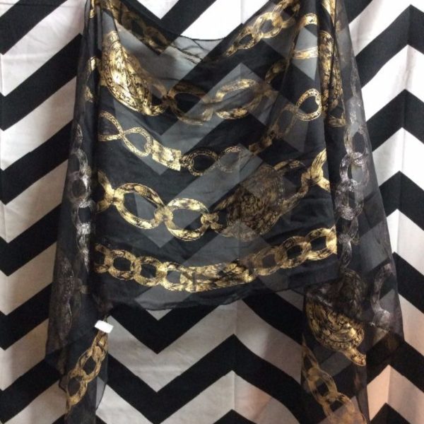 Scarf, silk, chain print design, black/gold