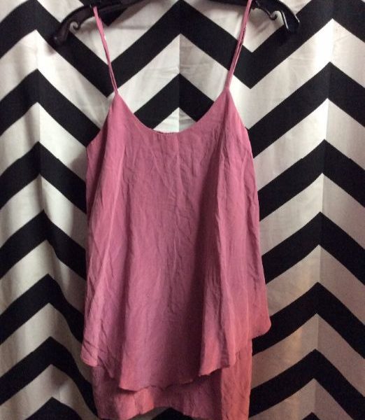 TANK TOP, SILK, SPAGHETTI STRAP, RUFFLED BOTTOM, ROSE