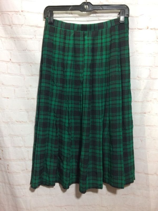 SILK TARTAN PLAID MIDI LENGTH SKIRT W/ PLEATS