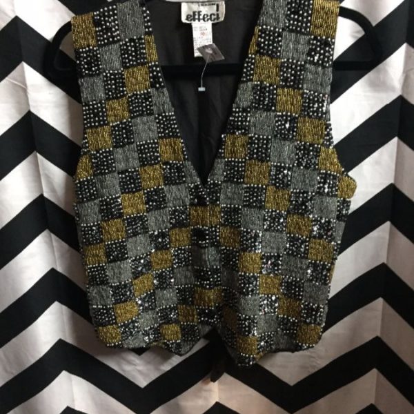 SILK VEST W/FULLY BEADED CHECKERED FRONT DESIGN