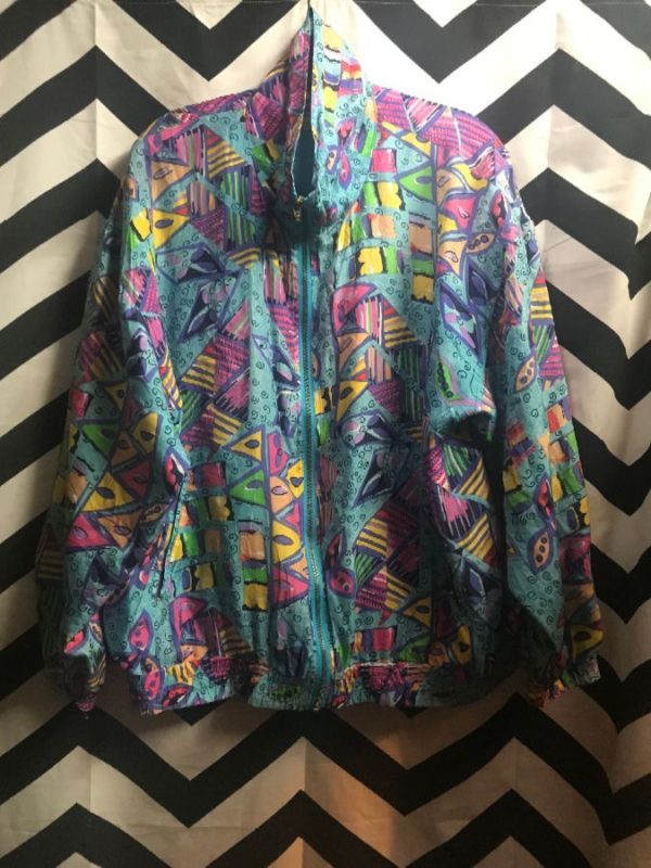 SILK WINDBREAKER W/ ABSTRACT GRAPHIC DESIGN MULTI-COLORS