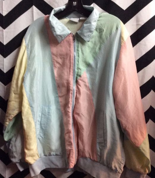 Windbreaker jacket, silk, soft, pastel block design, pink/green/blue,size M